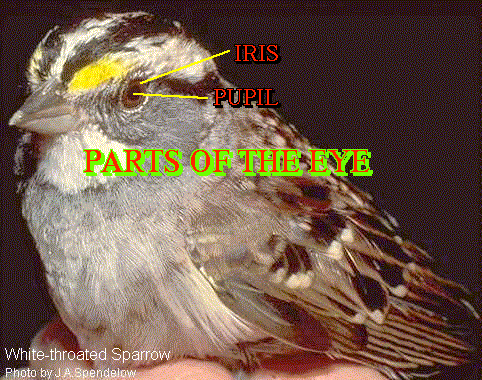 - Line of feathers in front of and behind the eye.