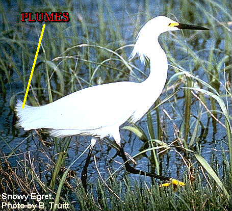- Feathers extending from the rear of the bird.